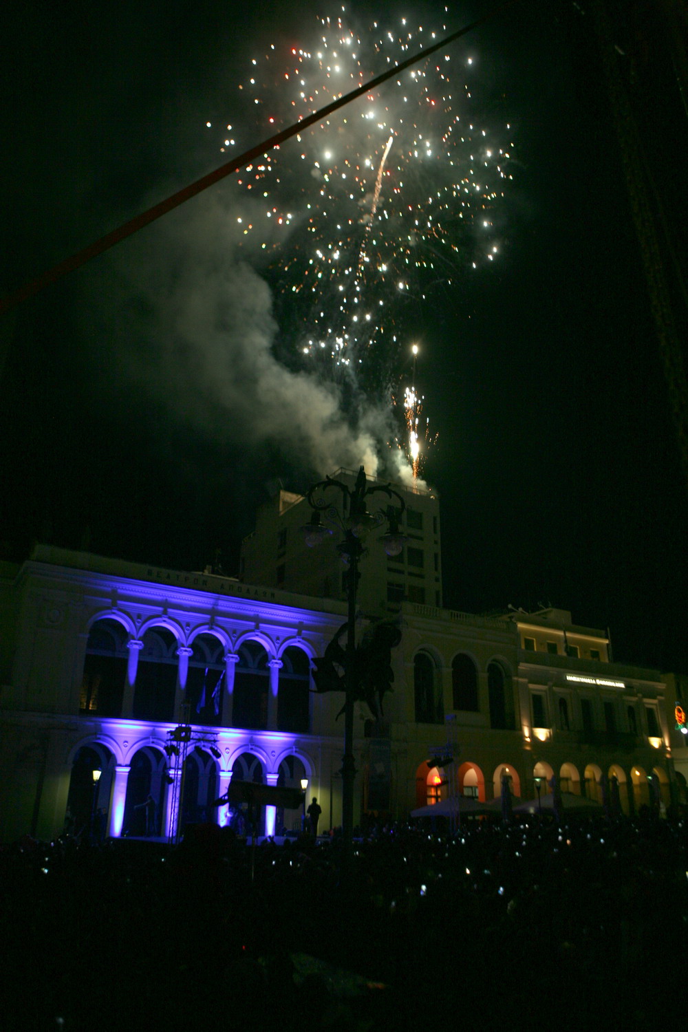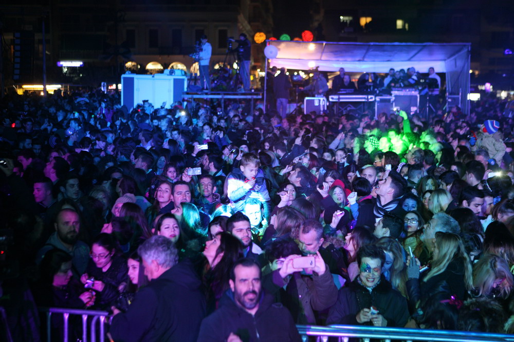 Ένας χείμαρρος εντυπωσιακών πυροτεχνημάτων, με εκκίνηση την ταράτσα του Μεγάρου Λόγου και Τέχνης, έλαμψε σ τον ουρανό και έδωσε αίγλη στη νύχτα της Πάτρας υπό τους καταιγιστικούς χορευτικούς ρυθμούς της μουσικής.