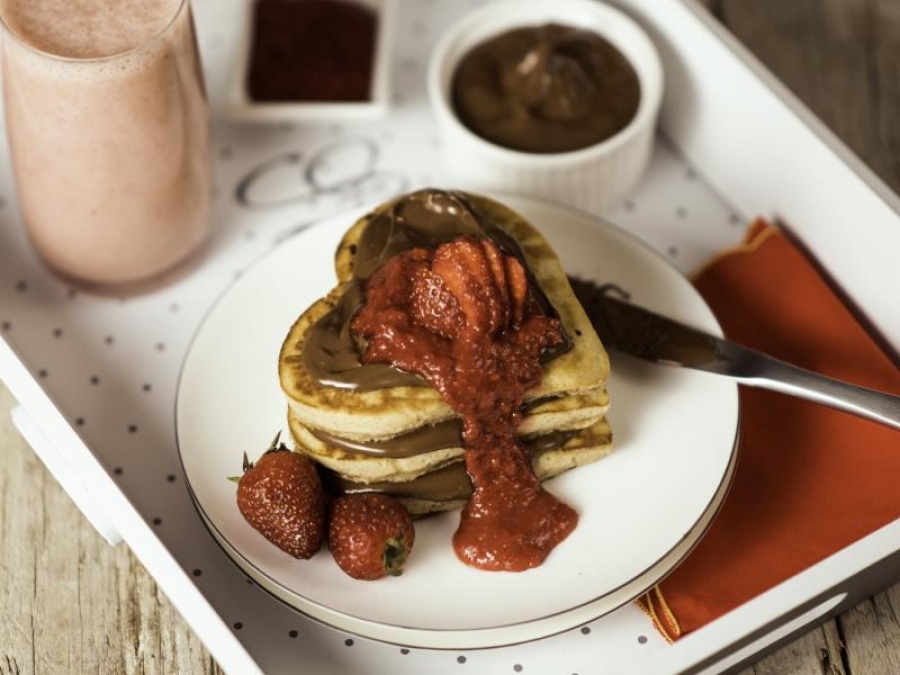 Brunch στο σπίτι! Λαχταριστά pancakes με πραλίνα και φράουλες