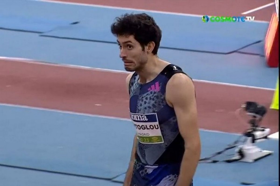Ο Μίλτος Τεντόγλου πέταξε στα 8,15μ. στο τρίτο του άλμα στο μίτινγκ της Μαδρίτης κι ο τηλεοπτικός φακός απαθανάτισε την τρομερή γκριμάτσα που έκανε μετά την προσπάθειά του.