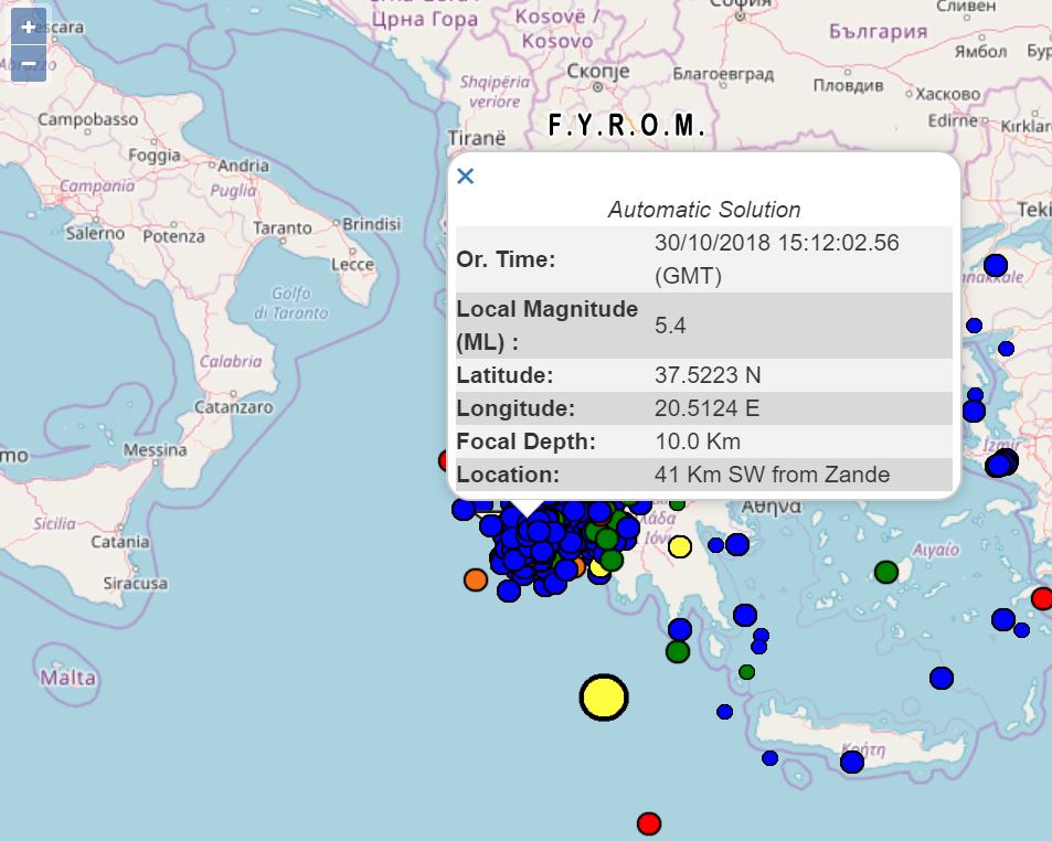 Σεισμός 5,4 Ρίχτερ ανοιχτά της Ζακύνθου