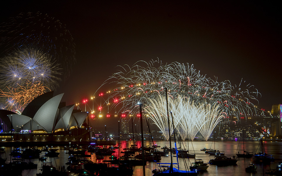 Η μεγαλύτερη πόλη της Αυστραλίας είχε ανακοινώσει για την αποψινή νύχτα την πιο μεγάλη γιορτή πυροτεχνημάτων που γίνεται ποτέ στον κόλπο του Σύδνεϋ. Έτσι, τα μεσάνυχτα ο ουρανός του Σύδνεϋ φωτίστηκε από τα χιλιάδες πυροτεχνήματα που εκτοξεύονταν από την Όπερα και τη γέφυρα του Χάρμπουργκ.